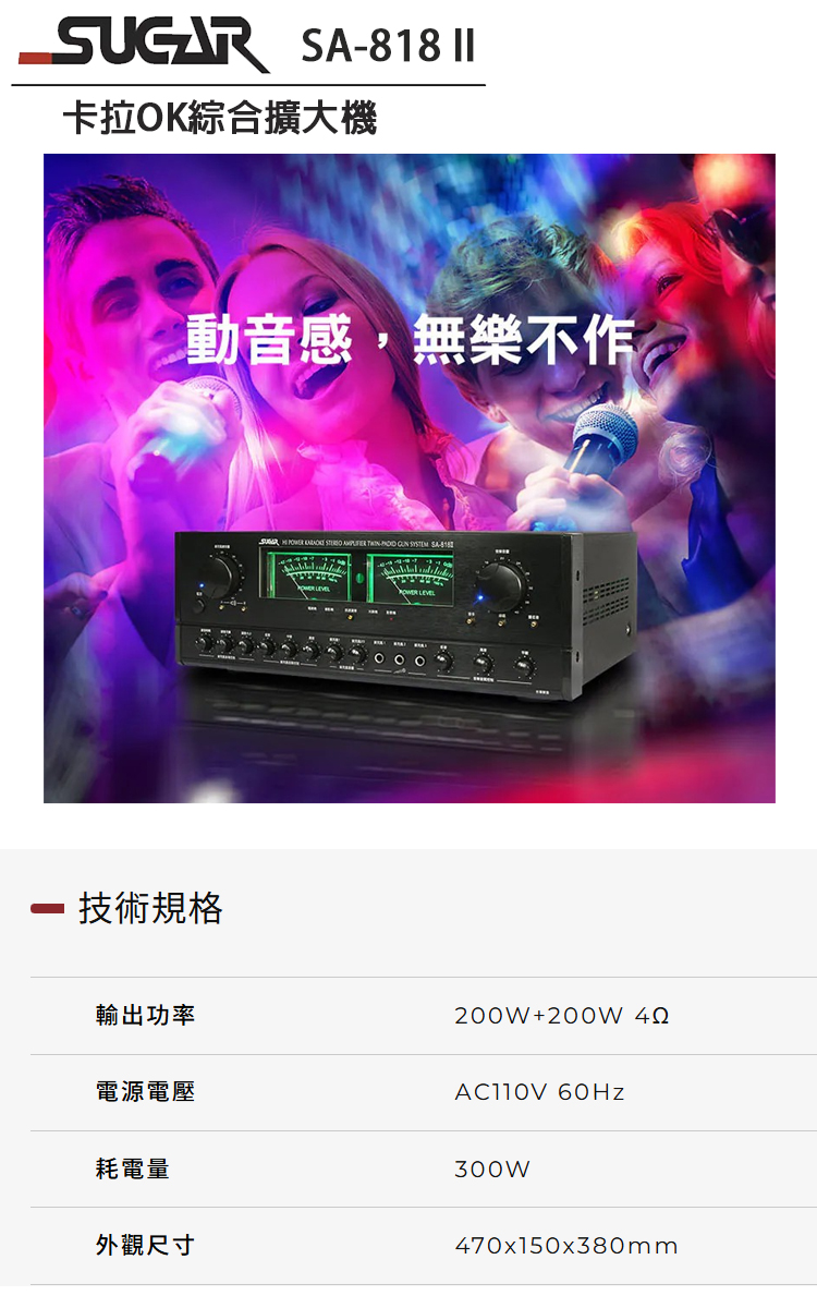 永悅音響 SUGAR SA-818II 多功能專業卡拉OK擴大機 全新公司貨