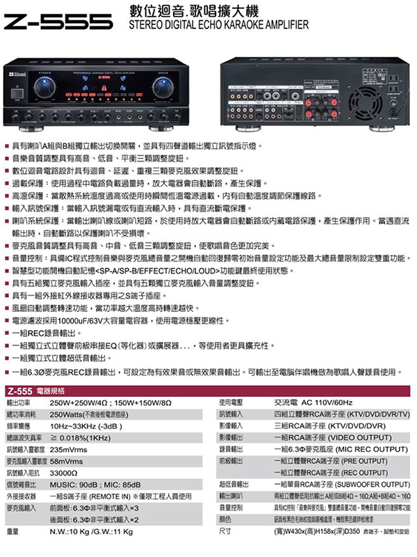 Zsound Z-555(數位迴音卡拉OK擴大機)