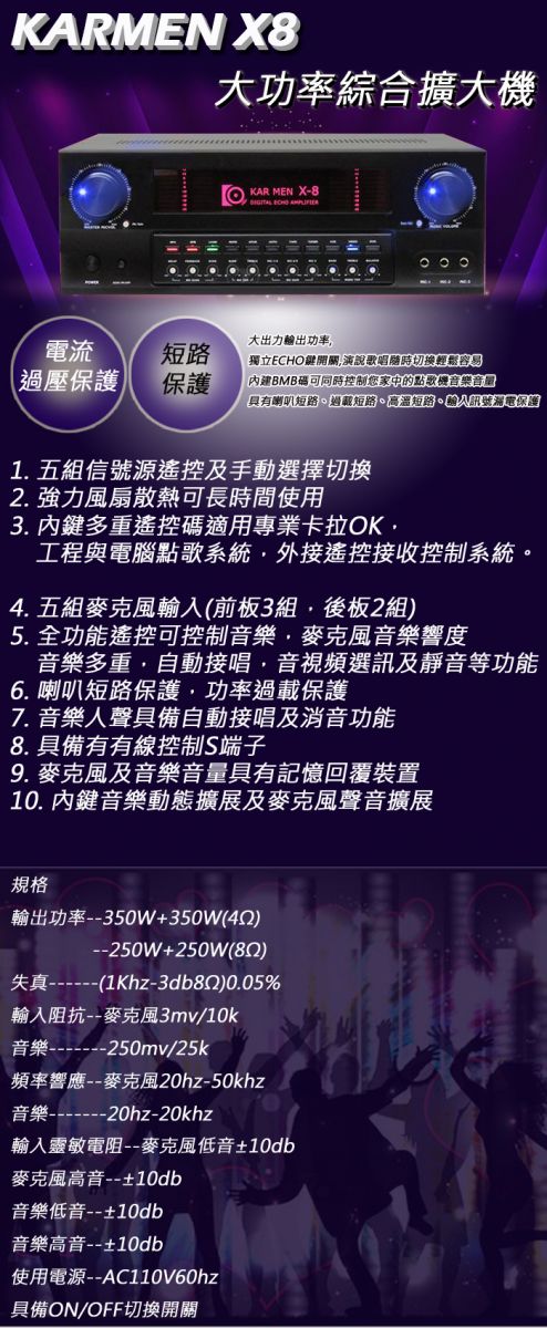 永悅音響 KARMEN X8數位迴音卡拉OK綜合擴大機 全新公司貨 (免運)