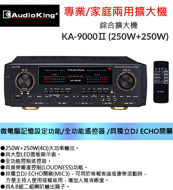 Audioking KA-9000II(250W+250W 專業卡拉OK音樂歌唱專業兩用擴大機)
