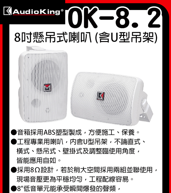 Audioking OK-8.2 白色一對(8吋懸吊式喇叭含腳架)