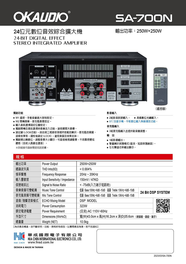 OKAUDIO SA-700N(24位元數位音效綜合擴大機 台灣製造)