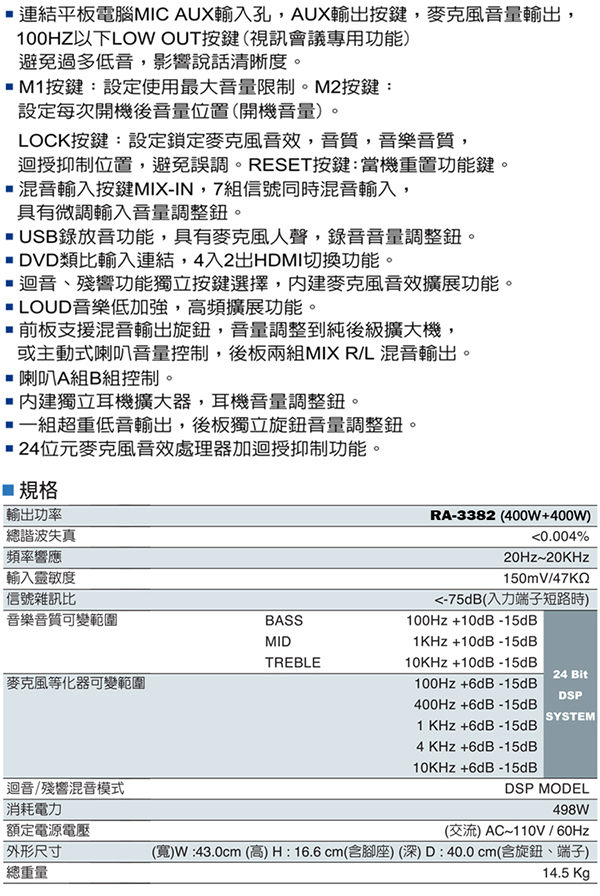 FNSD RA-3382(400W+400W高功率混音擴大機)