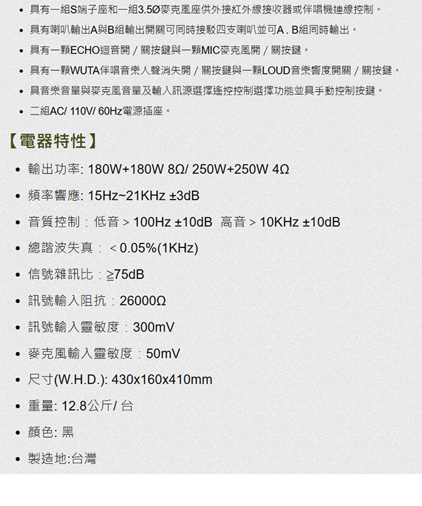 TDF F-180 前後級卡拉OK歌唱擴大機(180W+180W)