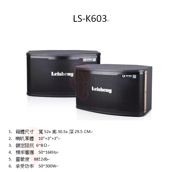 Leisheng LS-K603(一對 10吋專業懸吊式卡拉OK喇叭)
