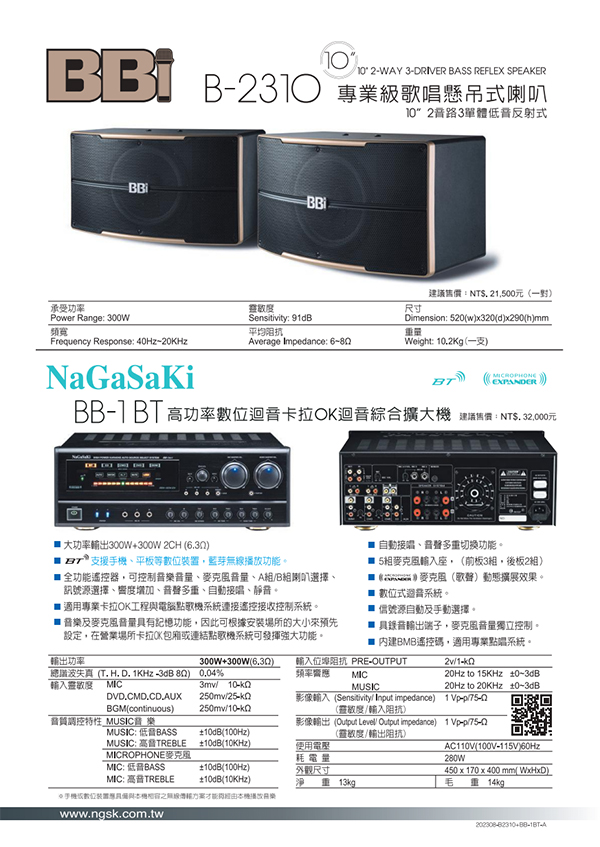 NaGaSaKi BB1 B-2310(10吋2音路3單體低音反射式 歌唱級懸吊式喇叭)