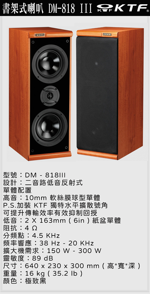 KTF DM-818Ⅲ 木紋色 二音路低音反射式書架喇叭一對