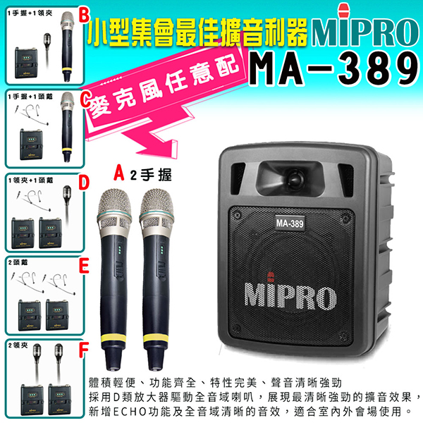 MIPRO MA-389 雙頻道迷你無線擴音機 (ACT-58H 配件六擇一)