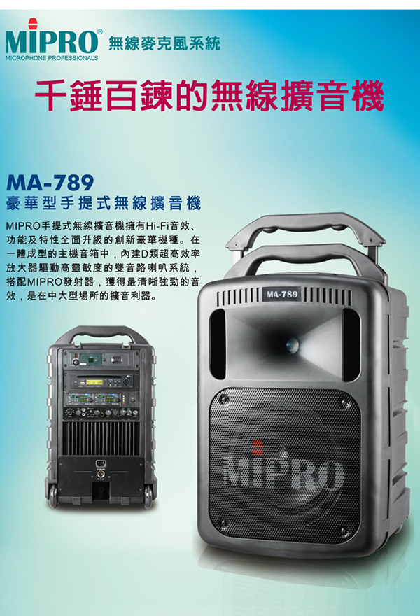 【MIPRO】MA-789 雙頻道新豪華型無線擴音機 (ACT-32H 配件六擇一)