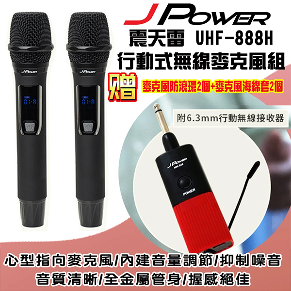 J-POWER 杰強 震天雷 UHF-888H 雙手握無線麥克風(含發射器+2手握無線手握麥克風)