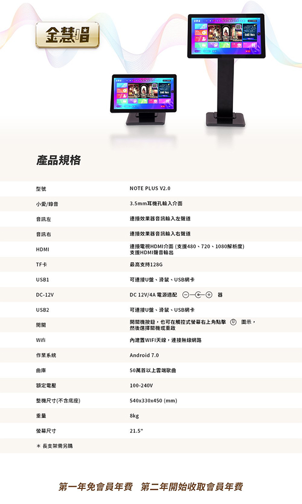 金慧唱 Note Plus V2.0(21.5吋 智能雲端點歌機 含4TB硬碟)