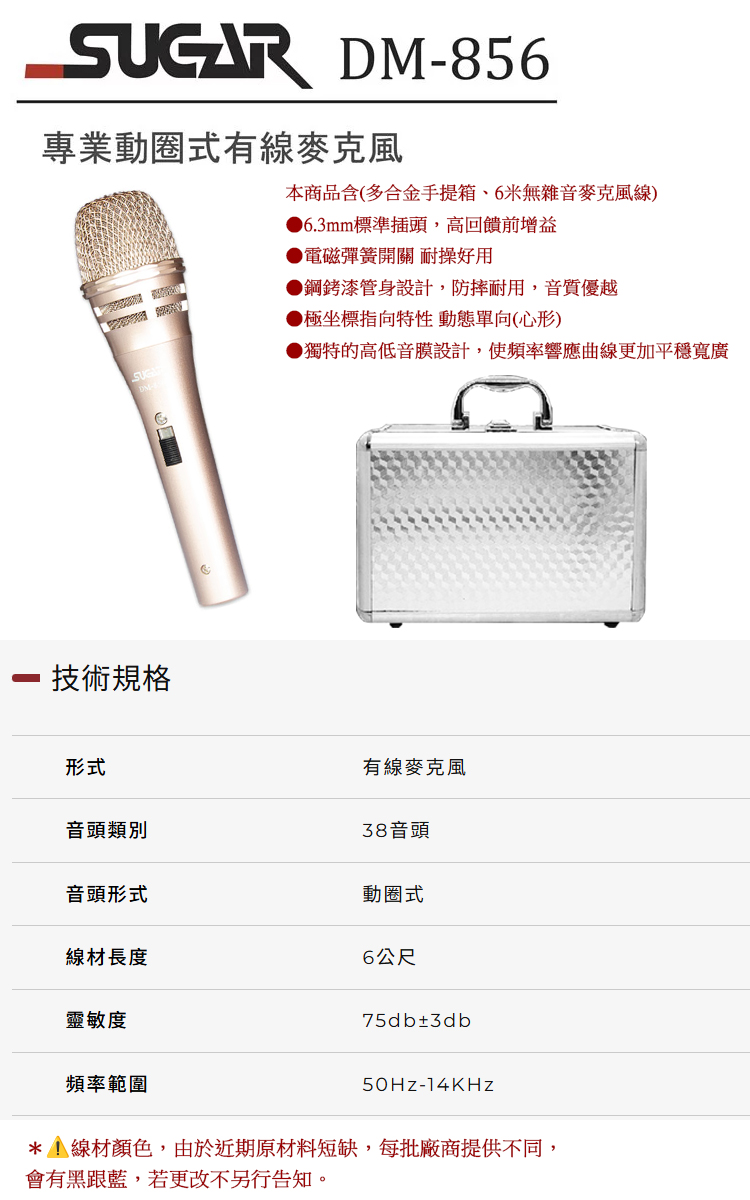 永悅音響 SUGAR DM-856 專業動圈式有線麥克風 (銀色/單支售/含麥克風線/收納盒) 台灣製造 全新公司貨