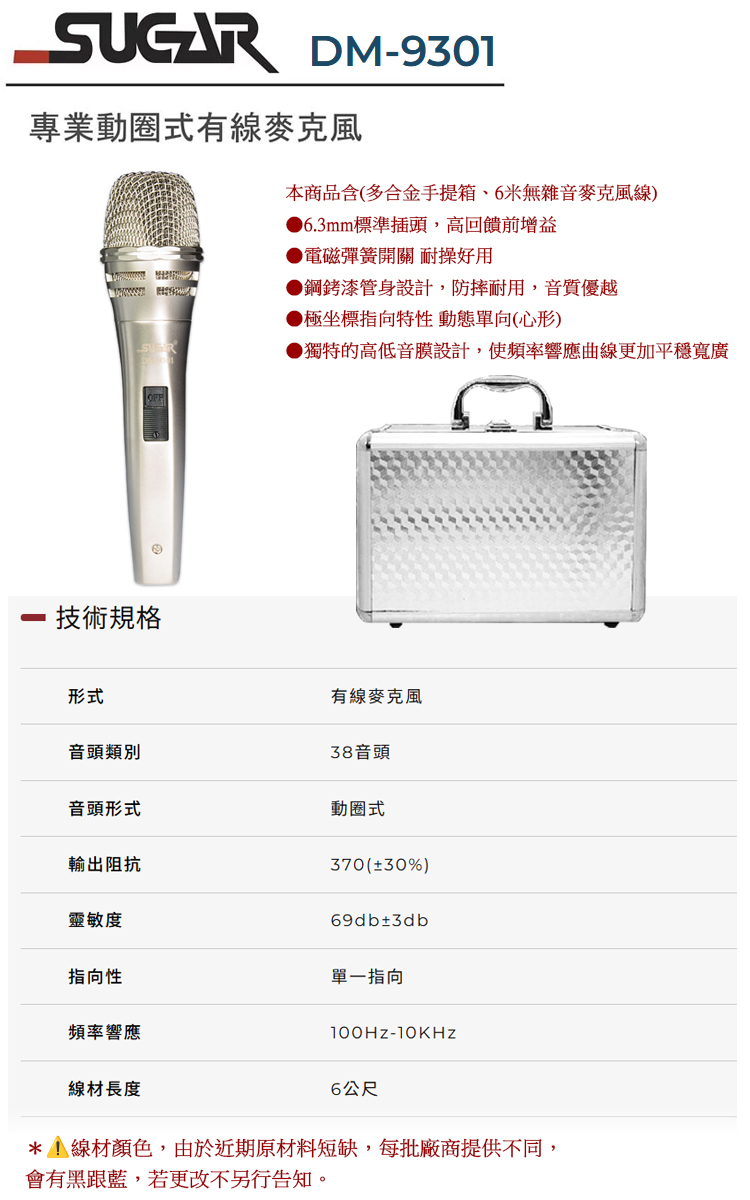 SUGAR DM-9301 動圈式/頂級專業有線麥克風 (單支售/含麥克風線/收納盒) 全新公司貨