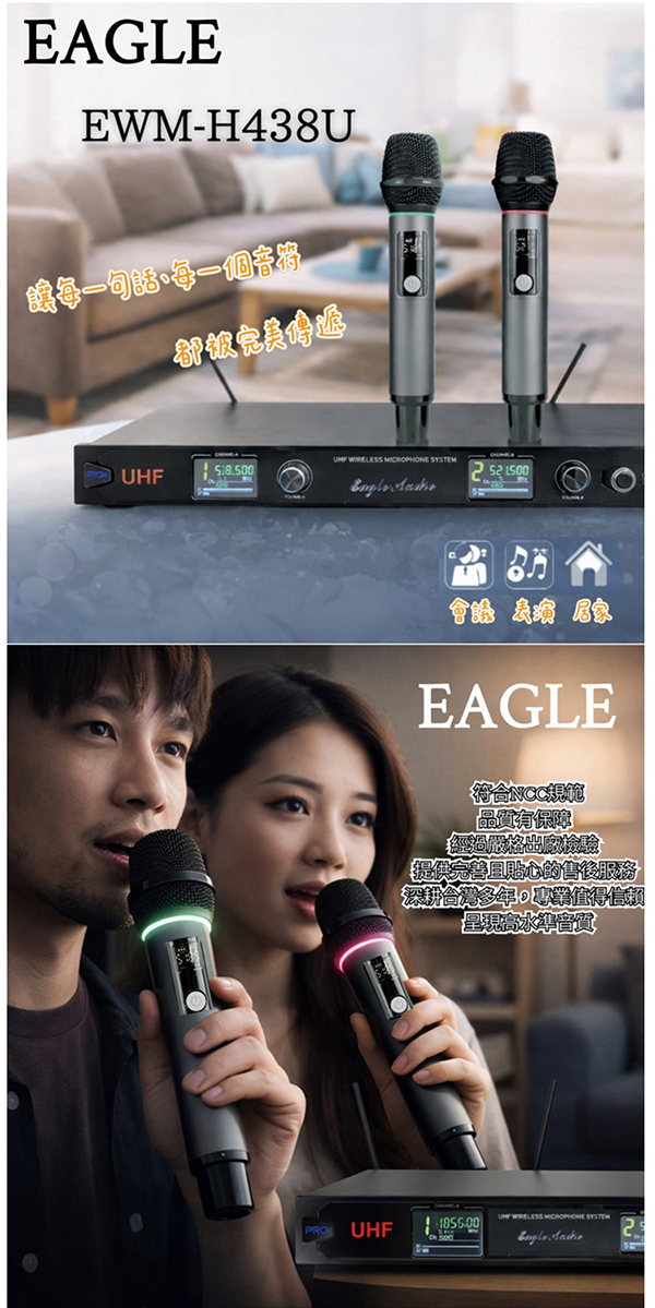 EAGLE EWM-H438U 一對二UHF無線麥克風