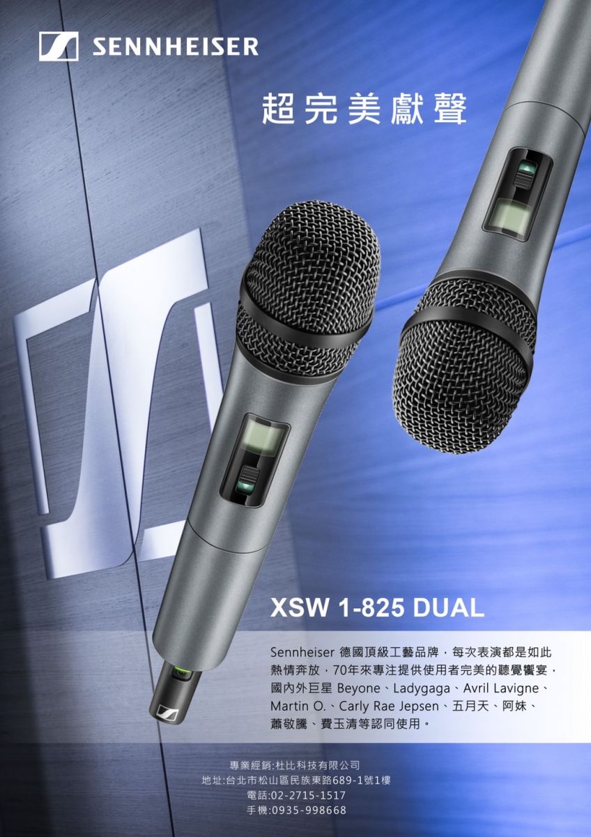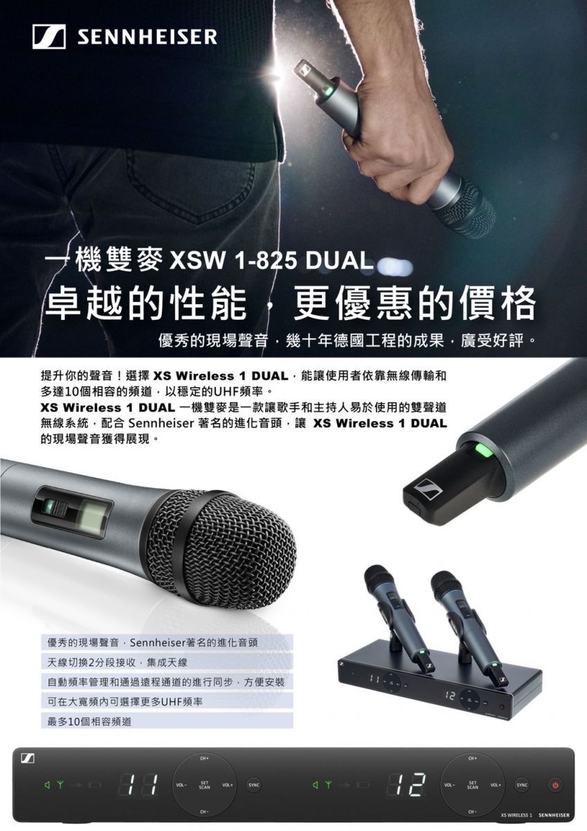 永悅音響 SENNHEISER XSW 1-825 DUAL UHF頻段 雙手握無線麥克風 全新公司貨