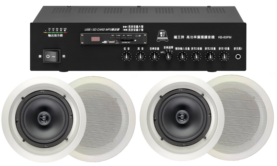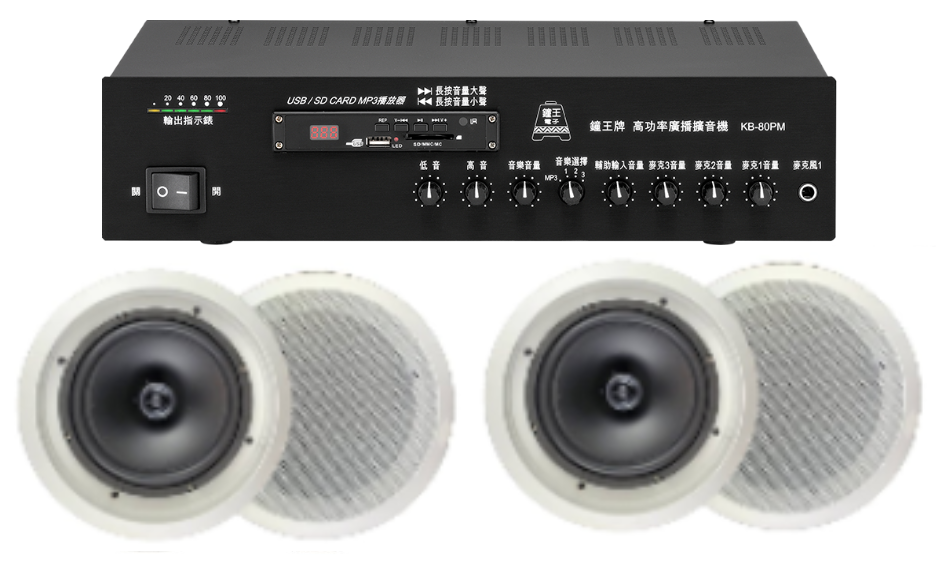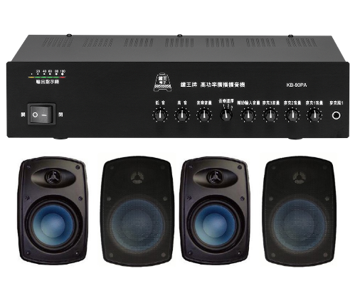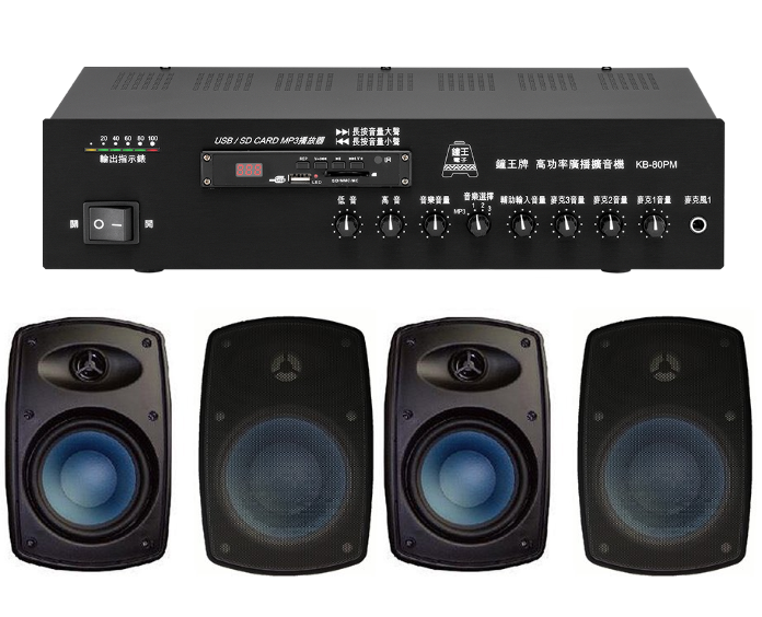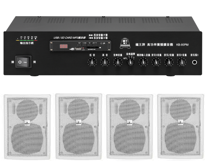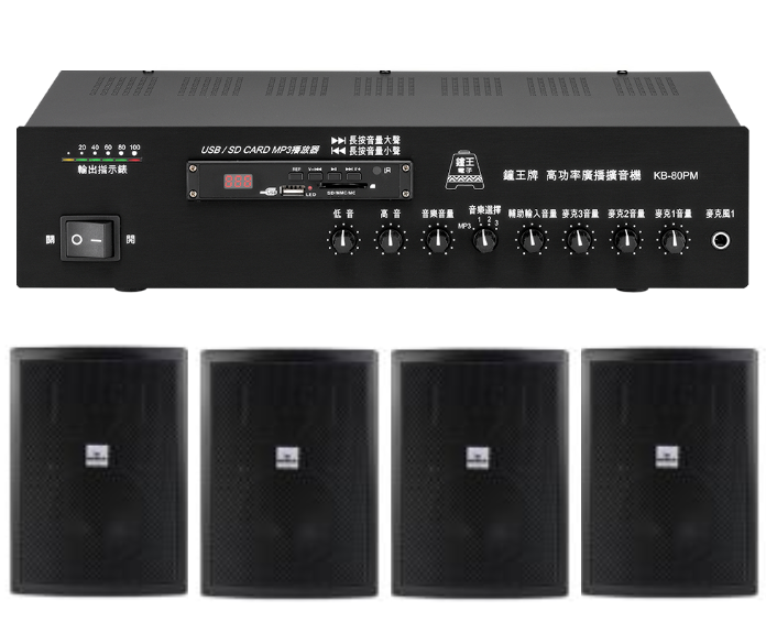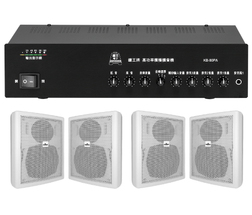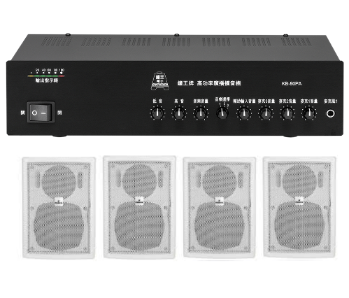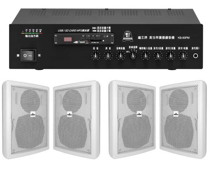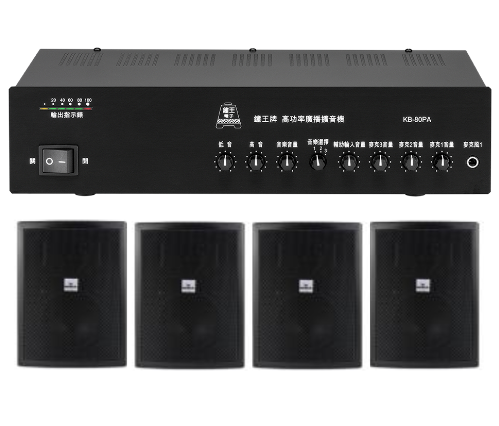 永悅音響 鐘王牌 KB-80PM+Poise H-5T 黑 專業廣播用擴大機+壁掛式喇叭(4支) 歡迎+即時通詢問 免運