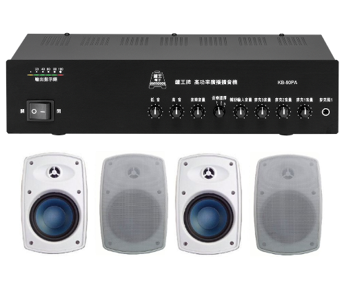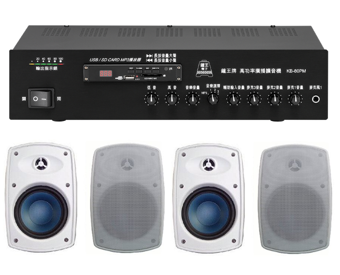 永悅音響 鐘王牌 KB-80PM+Poise H-5T 白 專業廣播用擴大機+壁掛式喇叭(4支) 歡迎+即時通詢問 免運