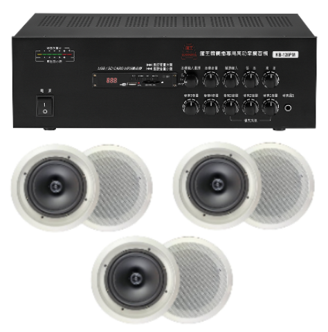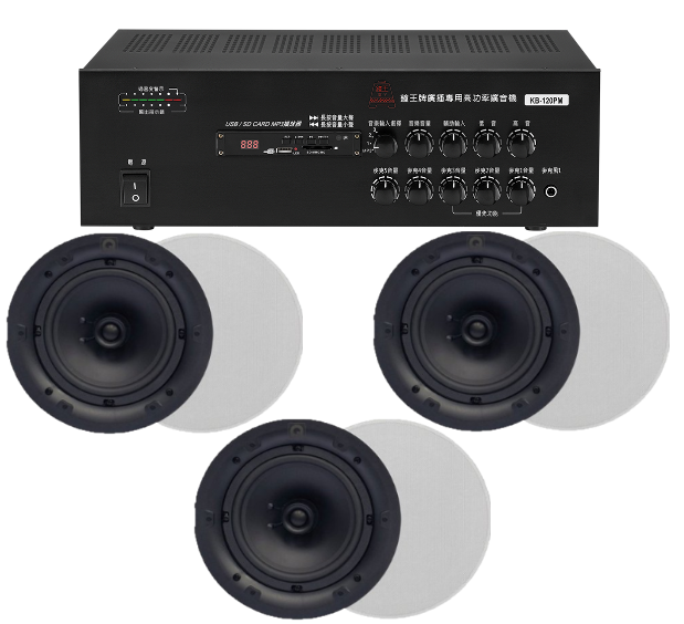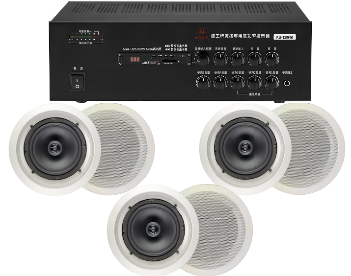 永悅音響 鐘王牌 KB-120PM+AV MUSICAL HSR-108-8T 專業廣播用擴大機+崁入式喇叭(6支)