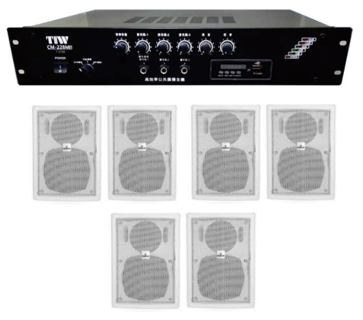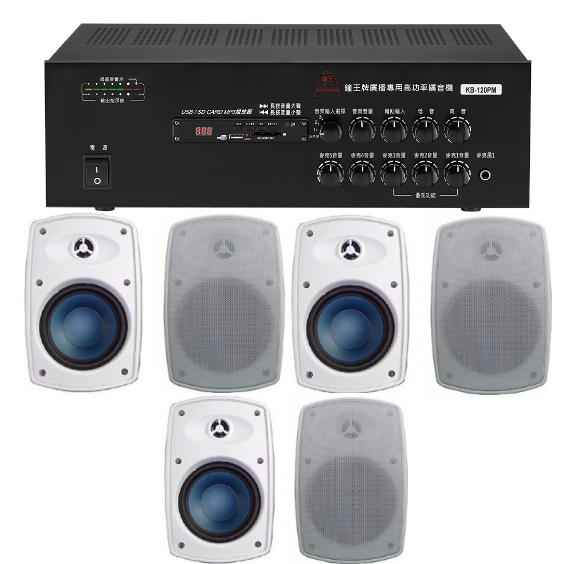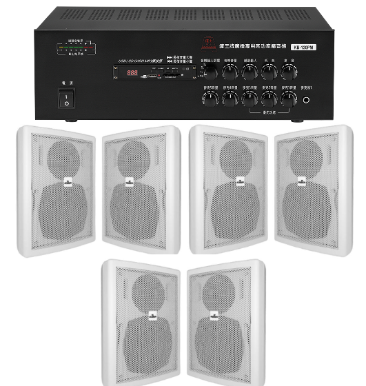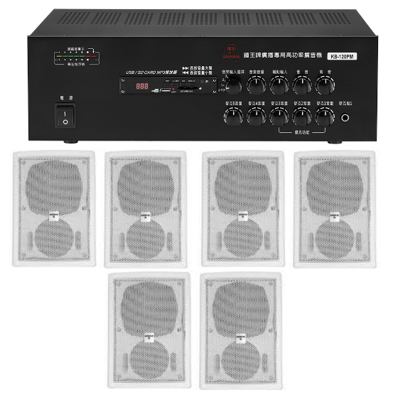 永悅音響 鐘王牌 KB-120PM+Poise H-5T 白 專業廣播用擴大機+壁掛式喇叭(6支)