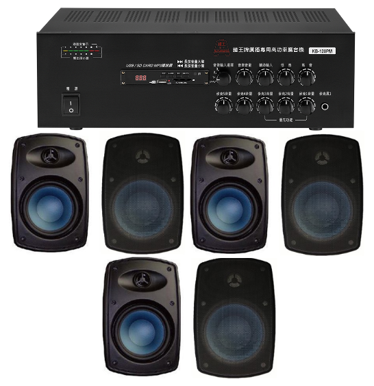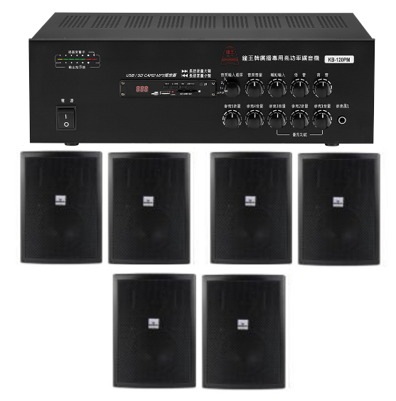 永悅音響 鐘王牌 KB-120PM+Poise H-5T 黑 專業廣播用擴大機+壁掛式喇叭(6支)