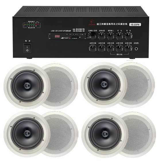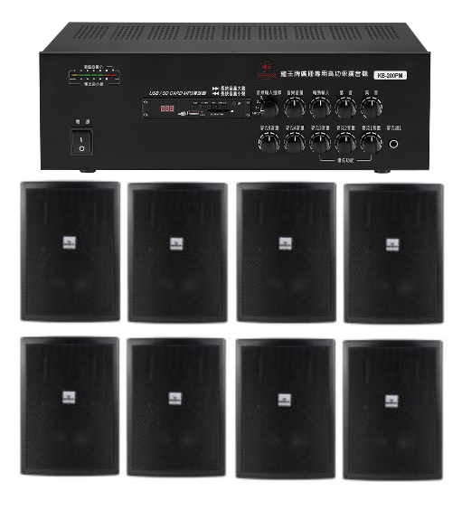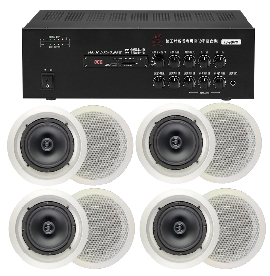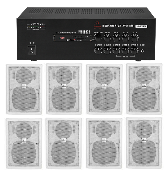 永悅音響 鐘王牌 KB-200PM+AV MUSICAL HSR-108-8T 專業廣播用擴大機+崁入式喇叭(8支)