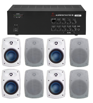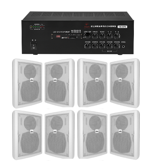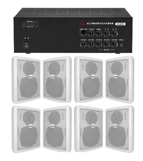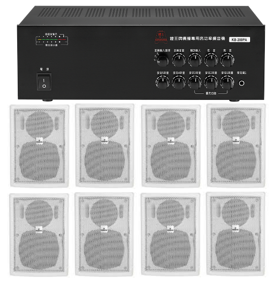 永悅音響 鐘王牌 KB-200PA+Poise H-5T 白 專業廣播用擴大機+壁掛式喇叭(8支)