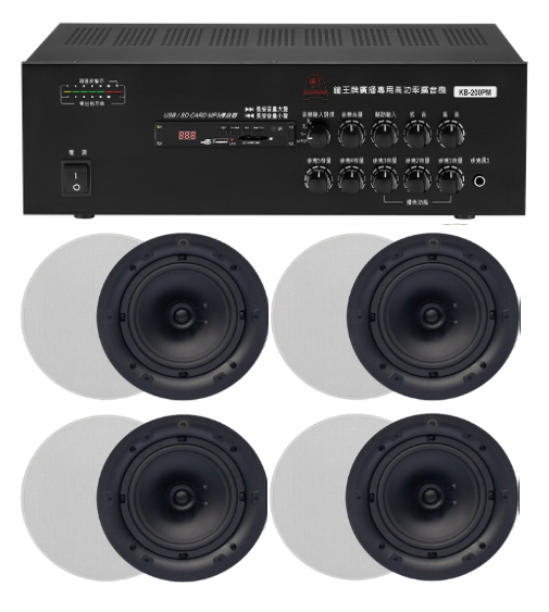 永悅音響 鐘王牌 KB-200PM+AV MUSICAL HSR-108-6T 專業廣播用擴大機+崁入式喇叭(8支)