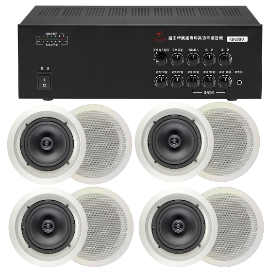 永悅音響 鐘王牌 KB-200PA+AV MUSICAL HSR-108-6T 專業廣播用擴大機+崁入式喇叭(8支)