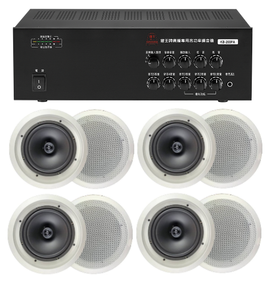 永悅音響 鐘王牌 KB-200PA+Q Acoustics Qi65CB 專業廣播用擴大機+崁入式喇叭(8支)