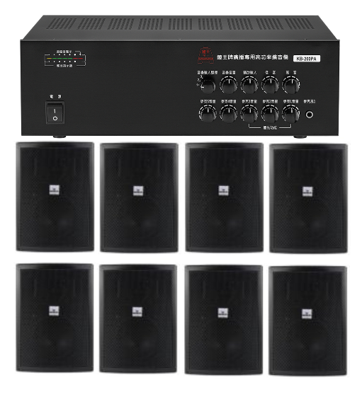 永悅音響 鐘王牌 KB-200PA+Poise H-4T 黑 專業廣播用擴大機+壁掛式喇叭(8支)