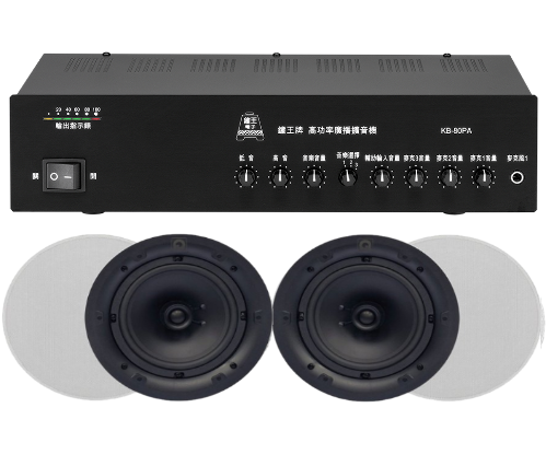 永悅音響 鐘王牌 KB-80PM+Q Acoustics Qi65CB 專業廣播用擴大機+崁入式喇叭4支
