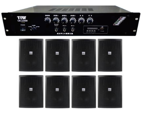 永悅音響 鐘王牌 KB-200PM+AV MUSICAL QS-61POR 黑 專業廣播用擴大機+壁掛式喇叭(8支)