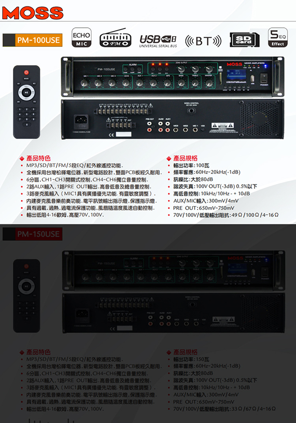 MOSS PM-100USE 商用/公共空間廣播擴大機 100W