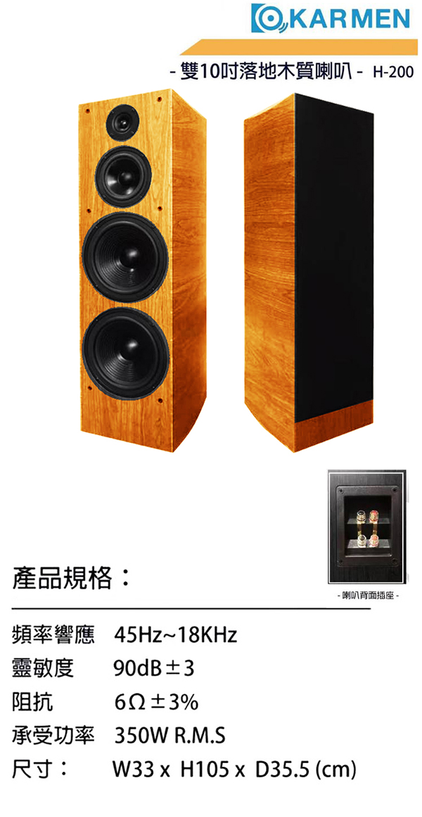 KARMEN H-200 家庭劇院/卡拉OK專業喇叭 木紋色一對