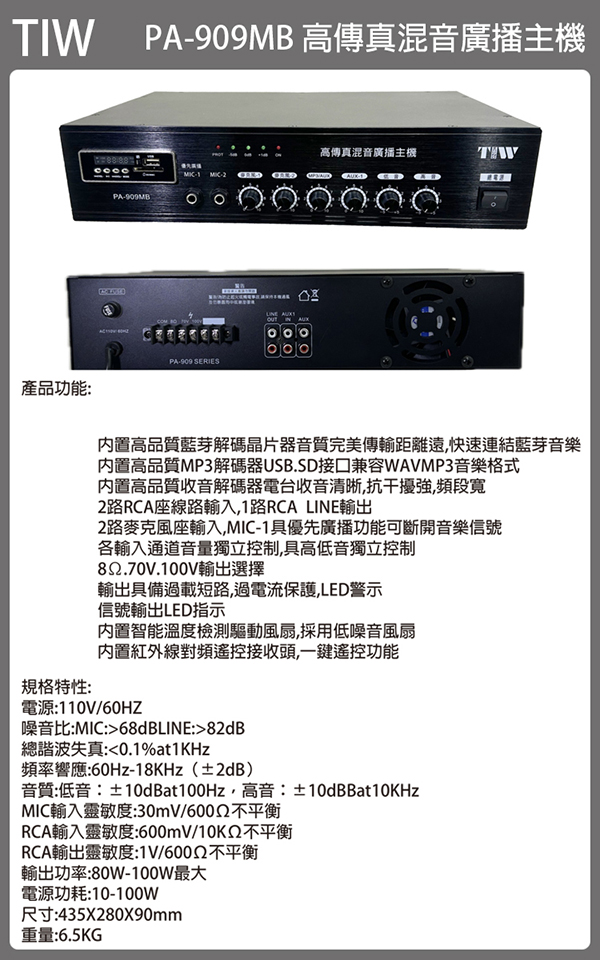 TIW PA-909MB 高傳真混音廣播主機