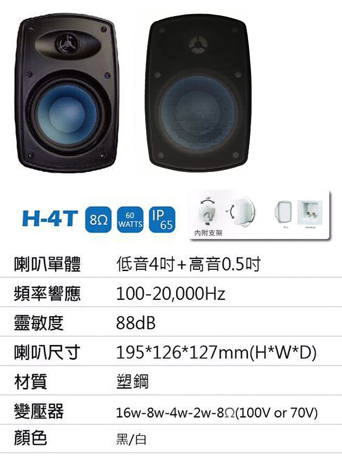 永悅音響 Poise H-4T 多用途喇叭 (黑/支) 全新公司貨 (免運)