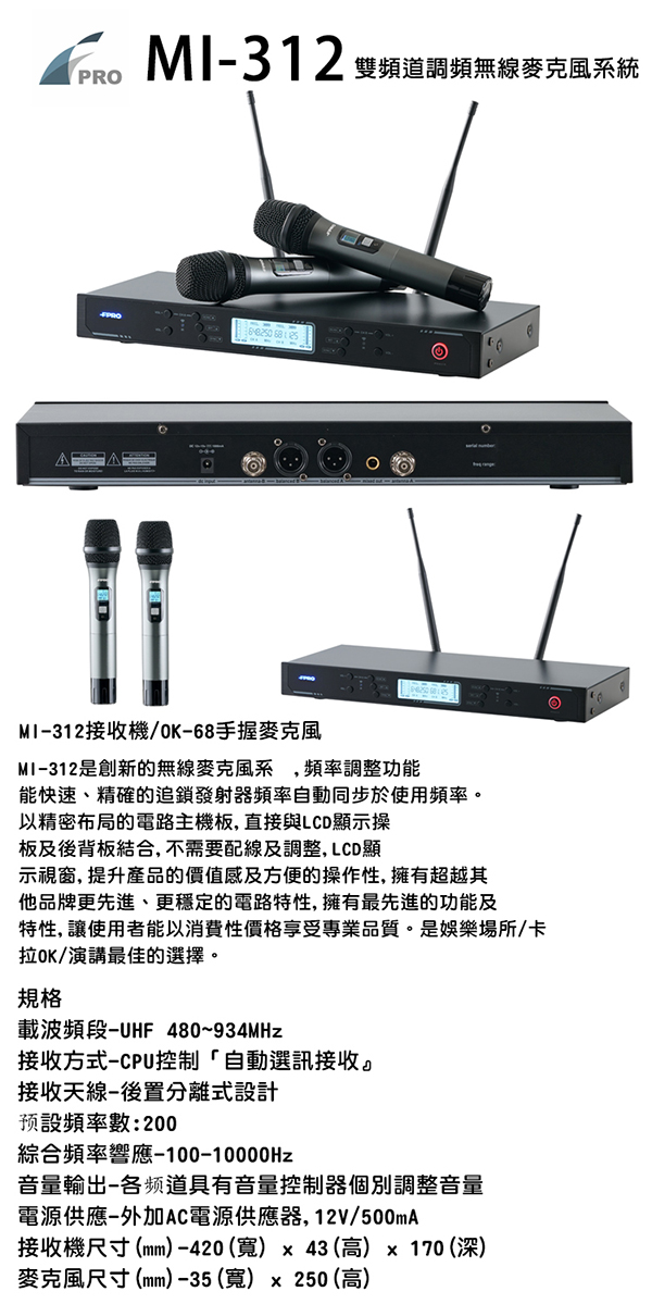 FPRO MI-312(雙頻道調頻無線麥克風)