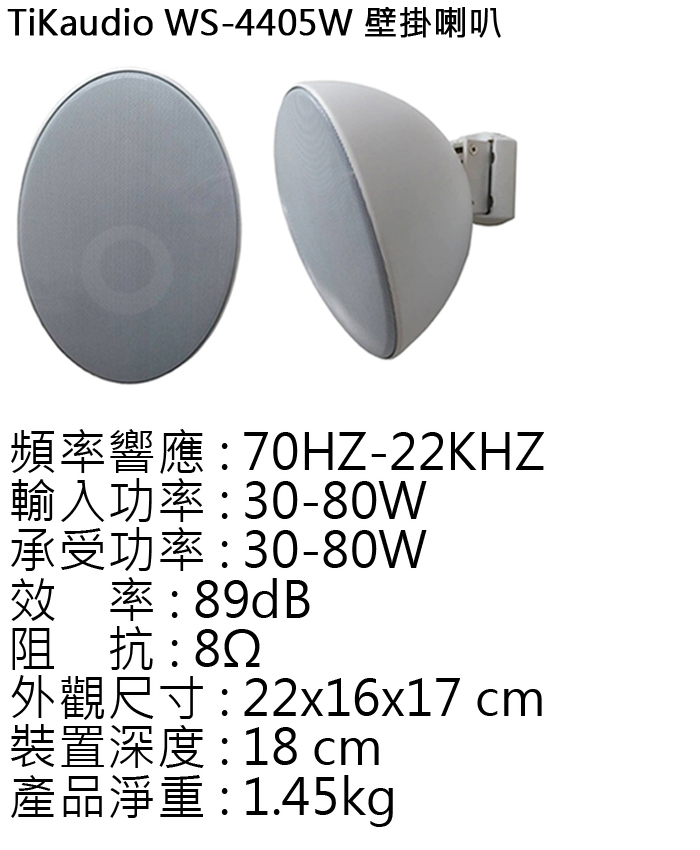 永悅音響 TiKaudio WS-4405 PA 環繞喇叭 (對/白) 含變壓器 全新公司貨 (免運)