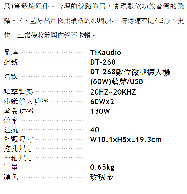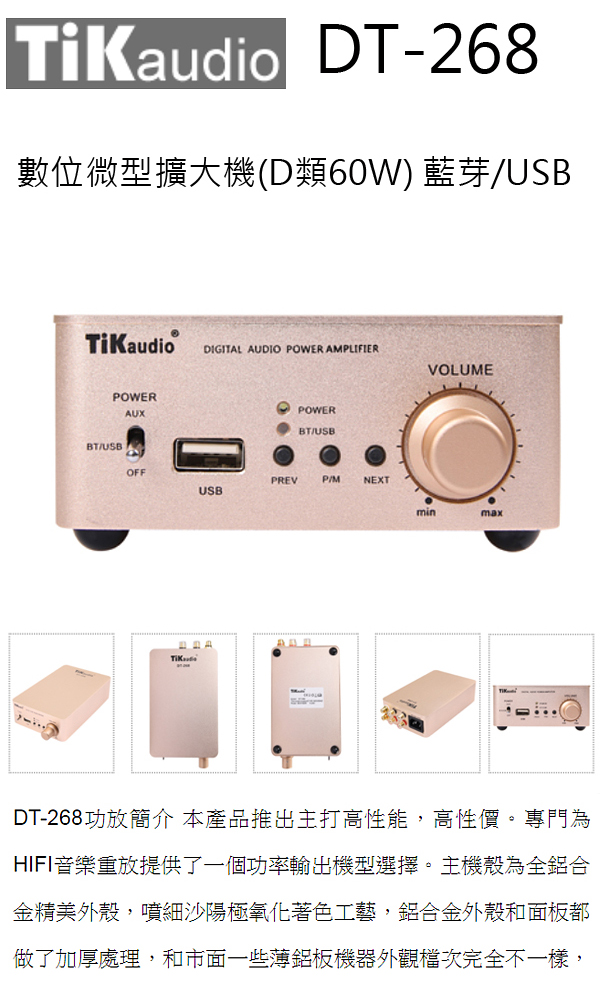 TiKaudio DT-268(數位微型擴大機/D類60W/藍芽/USB)