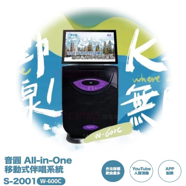 永悅音響 音圓 All-in-One S-2001 W-600C 移動式卡拉OK音響 全新公司貨 歡迎+即時通詢問