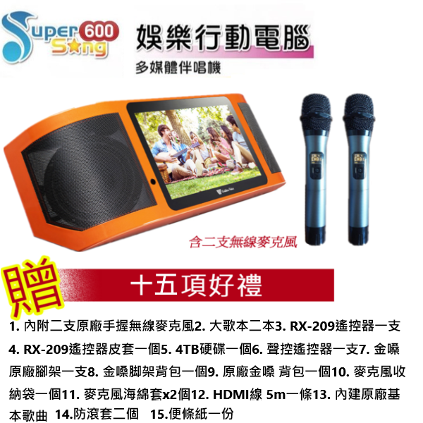 永悅音響 Super song 600 金嗓 六合一娛樂行動式伴唱機組合包-不含硬碟