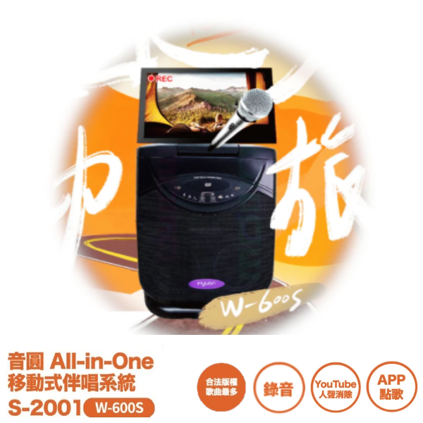 永悅音響 音圓 All-in-One 移動式卡拉OK音響 S-2001 W-600P+ 旗艦錄影燒片機種