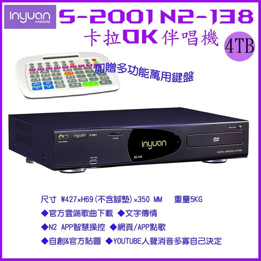 永悅音響 音圓 S-2001 N2-138 卡拉OK伴唱機 (4TB) 加贈多功能萬用鍵盤 全新公司貨