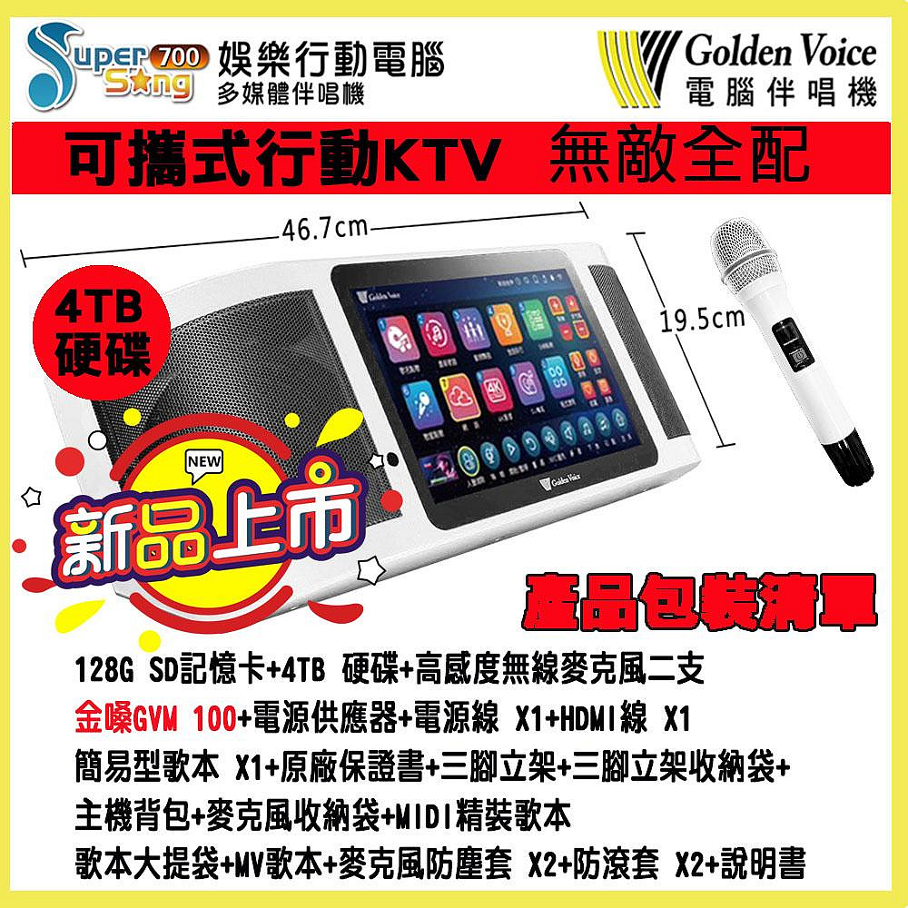 永悅音響 金嗓 Super song 700 (豪華全配) 攜帶式多功能電腦伴唱機 贈多項好禮