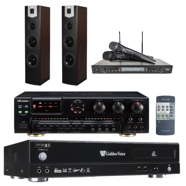 永悅音響 OK AUDIO AK-7+JBL VM-200+JBL Ki510 擴大機+無線麥克風+3音路全頻喇叭