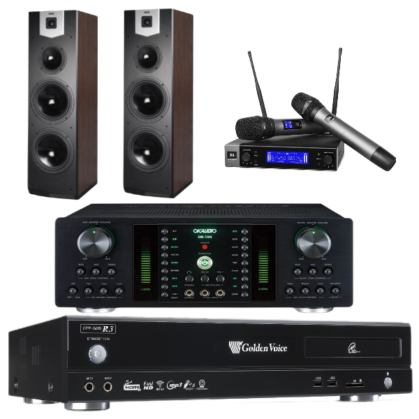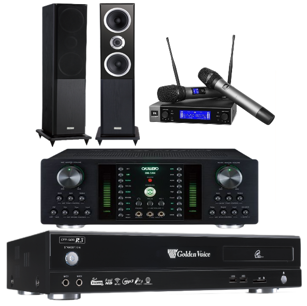 永悅音響 OK AUDIO DB-9A+JBL VM-200+ JBL Ki510 綜合擴大機+無線麥克風+3音路揚聲器