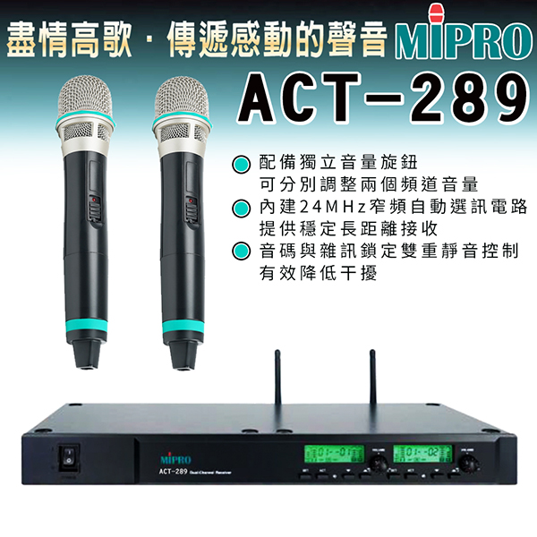 【MIPRO】ACT-289 雙頻道UHF無線麥克風 (ACT-29H/MU-80III)