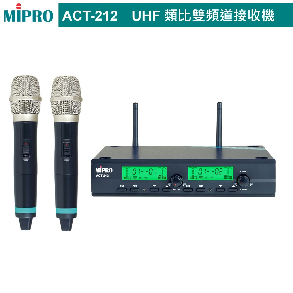 MIPRO ACT-212 配ACT-22H 手握式無線麥克風(UHF類比雙頻道無線麥克風 嘉強公司貨保固一年)
