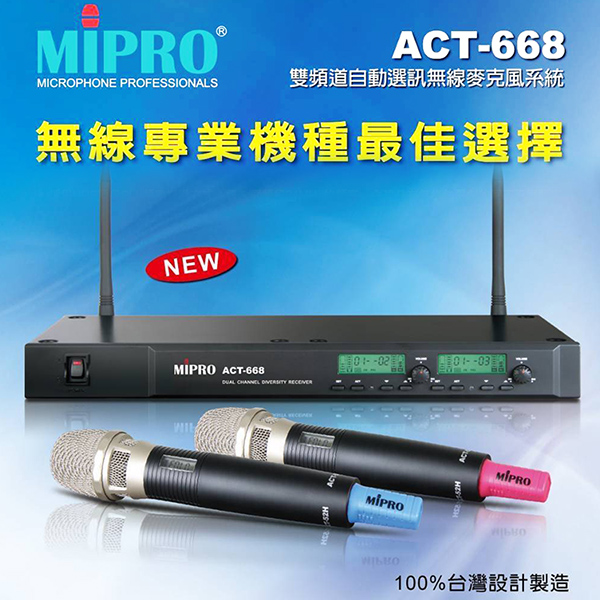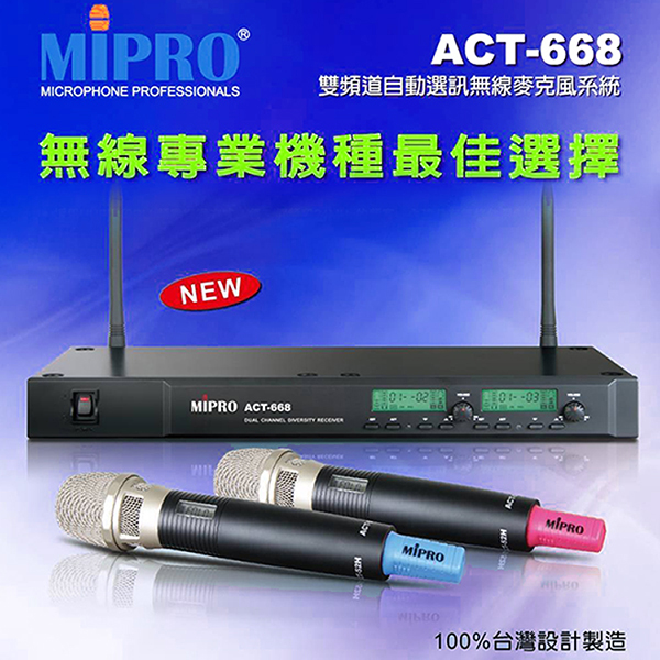 【MIPRO】ACT-668雙頻道無線麥克風 (ACT-52H/MU90)