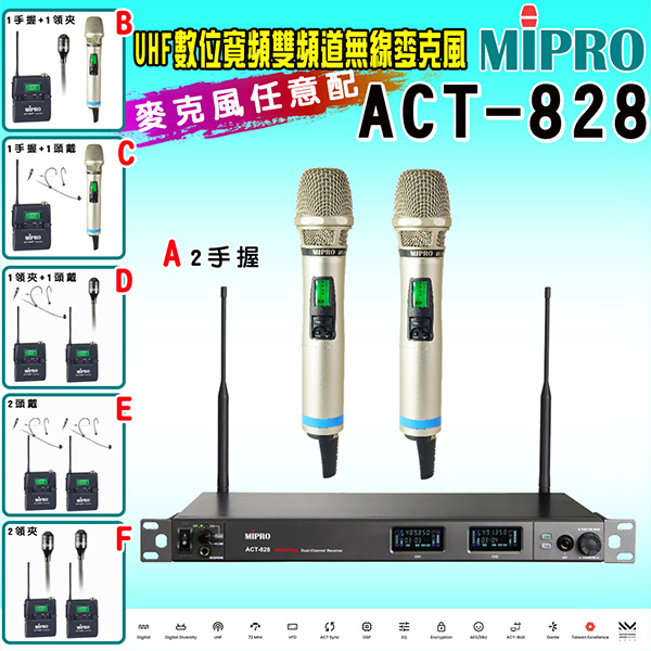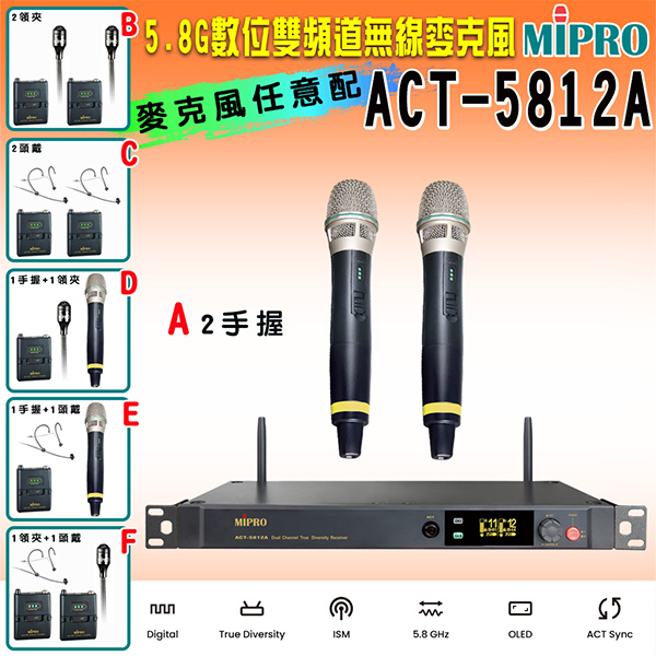 【MIPRO】ACT-5889G 數位雙頻道無線麥克風(ACT-580H/MU90 配件六擇一)